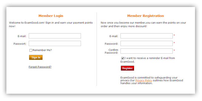 1. Click "Sign in / Register" on top right corner on our website, to become a formal member of ExamGood.